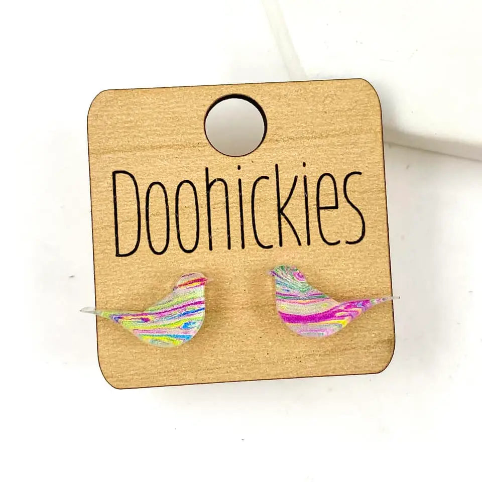Bird Stud Earrings-Multi Swirl