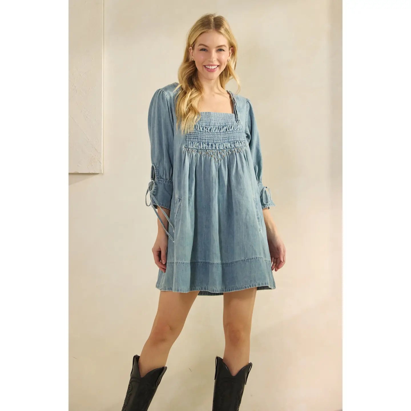 Denim Smocked Babydoll Dress