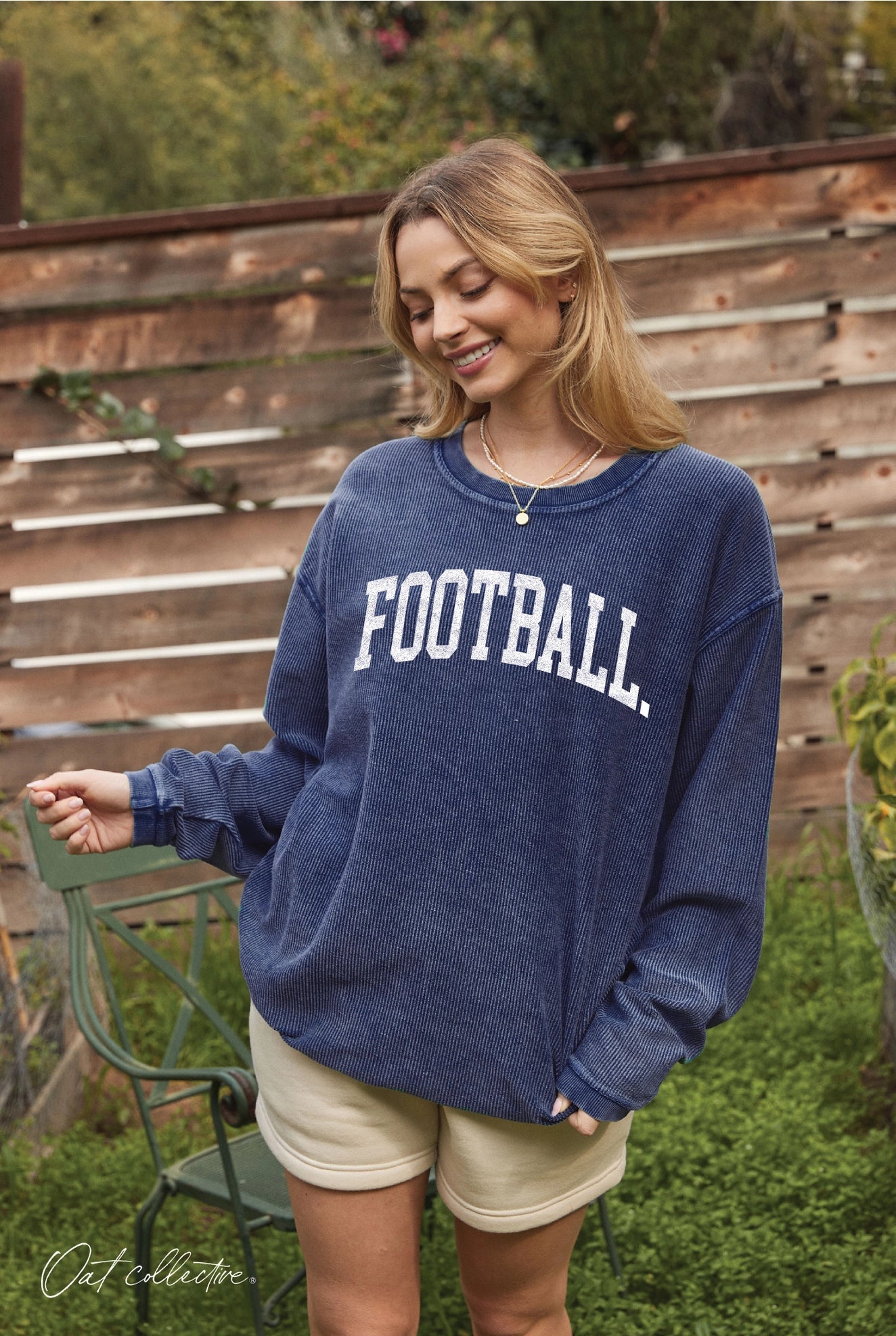 FOOTBALL Thermal Vintage Pullover Oversized sweatshirt with a super soft, vintage wash corded fabric -Special Mineral Washed to have vintage feel. -All items are slightly different because of the dying process of the garment. -Ribbed crew neckline, cuffs, and hemline -Machine wash, tumble dry low -Vintage washed cording- 100% cotton