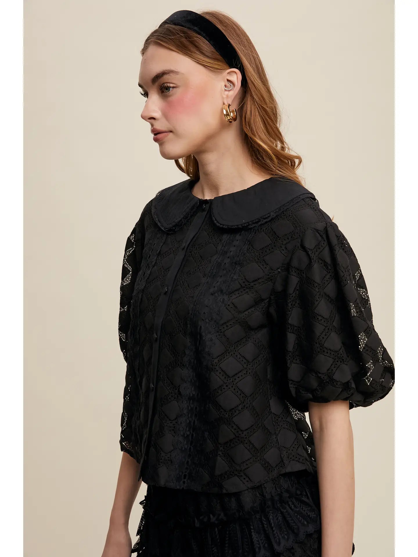Lace Peter Pan Collar Blouse-Black