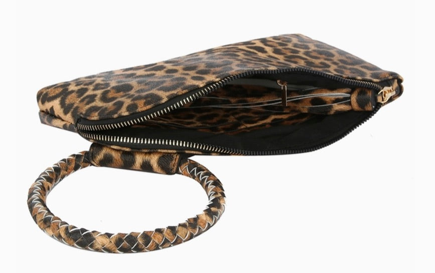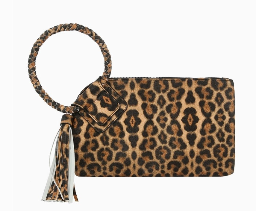 Leopard Cuff Handle Tassel Wristlet Clutch Bag