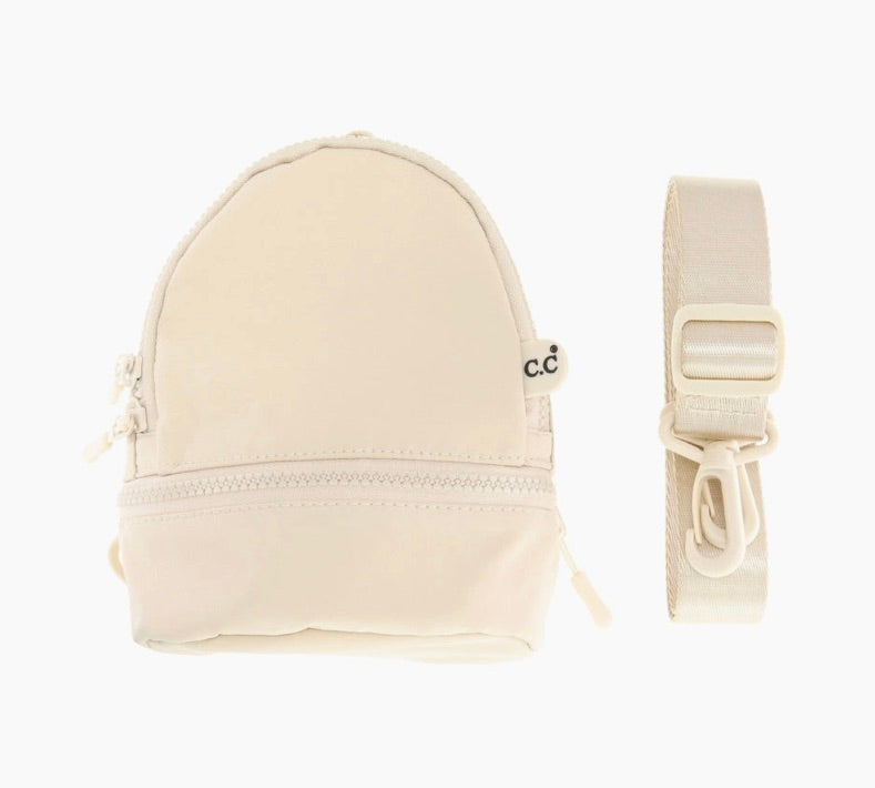 Effortlessly carry your essentials with our Mini Sling C.C Bag BGS4368. This versatile mini bag combines a backpack design with a small utility bag, making it perfect for on-the-go convenience. No more bulky bags weighing you down, just grab and go with our Mini Sling C.C Bag! Spot Clean only. Measures: 7 in. x 3 in. x 8 in. Strap: 49 in.
