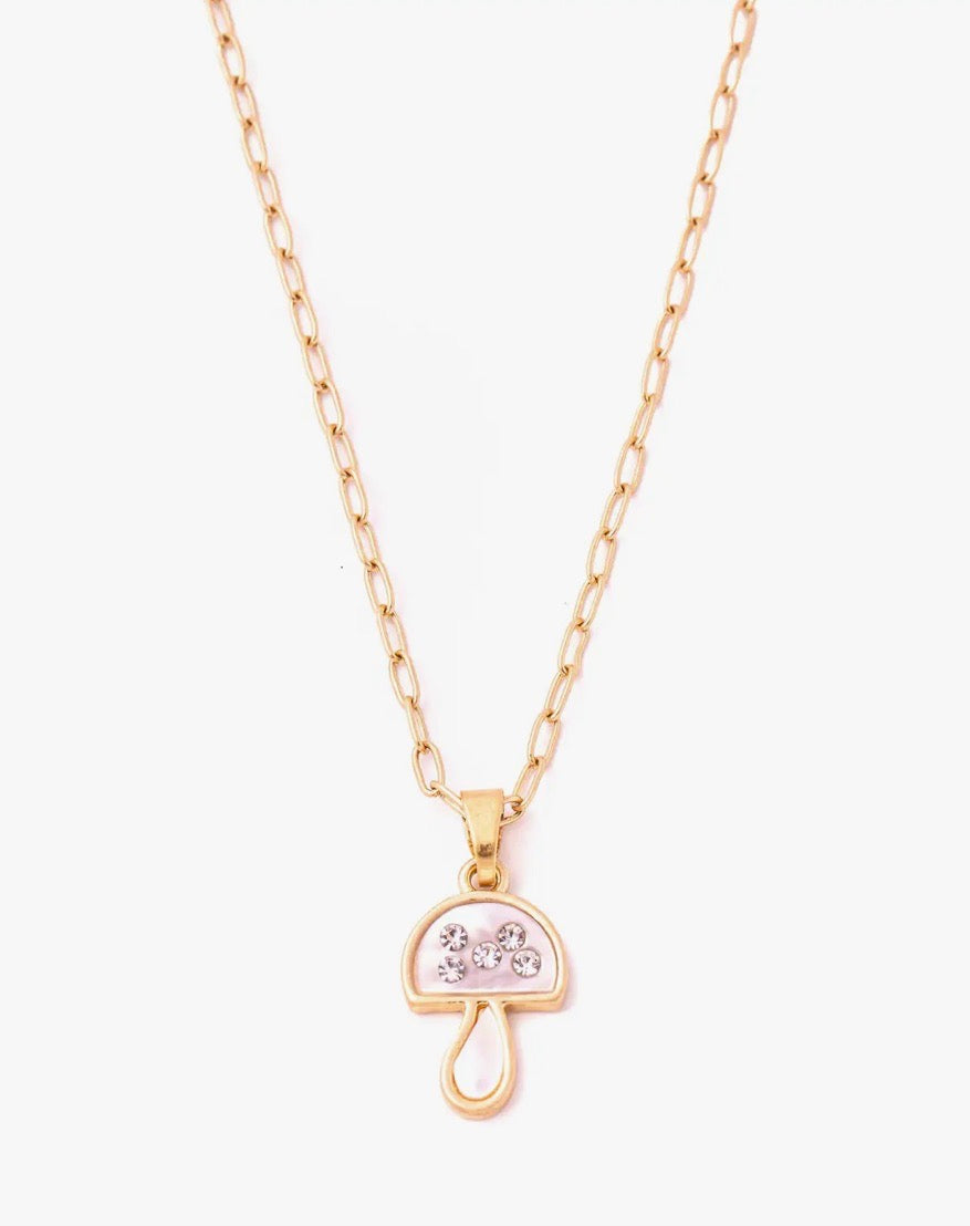 Mother of Pearl Mushroom Pendant Necklace