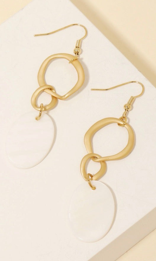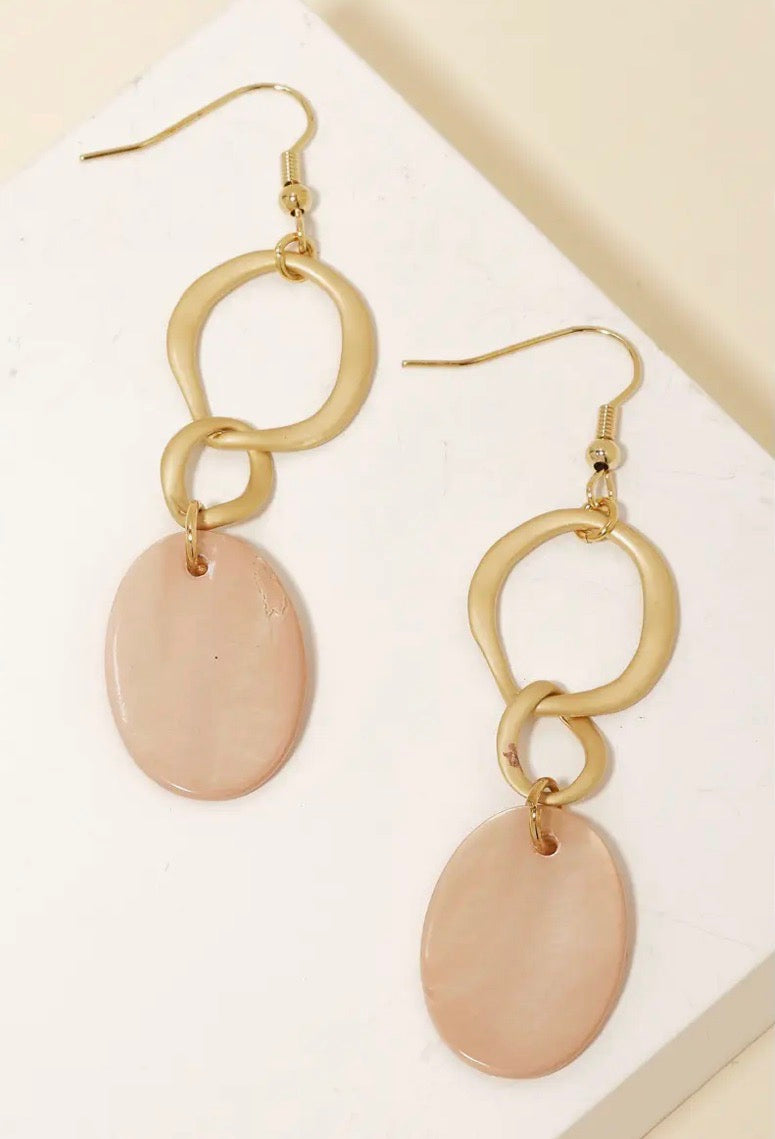 Mother of Pearl Oval Drop Earrings-Pink or White