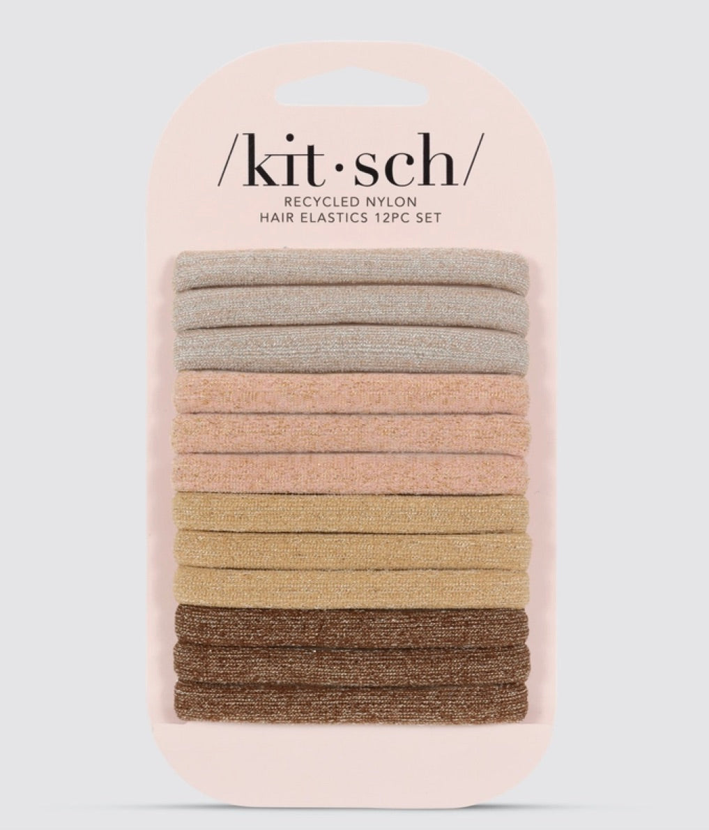 Recycled Nylon Glitter Medium Elastics 12pc- Neutral