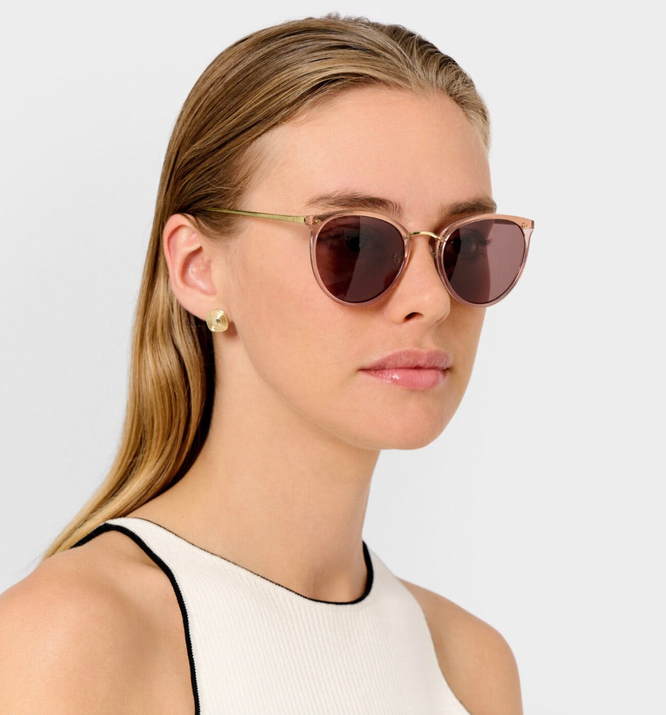 Characterized by a soft transparent frame our Santorini Sunglasses in Rose Gold are made from recycled materials and feature UV400 protection which cuts out 99% of UVA and UVB rays. Designed to be worn all year-round these sunglasses come complete with a protective fold-down sunglasses case that will keep them safe and scratch-free while in your handbag.