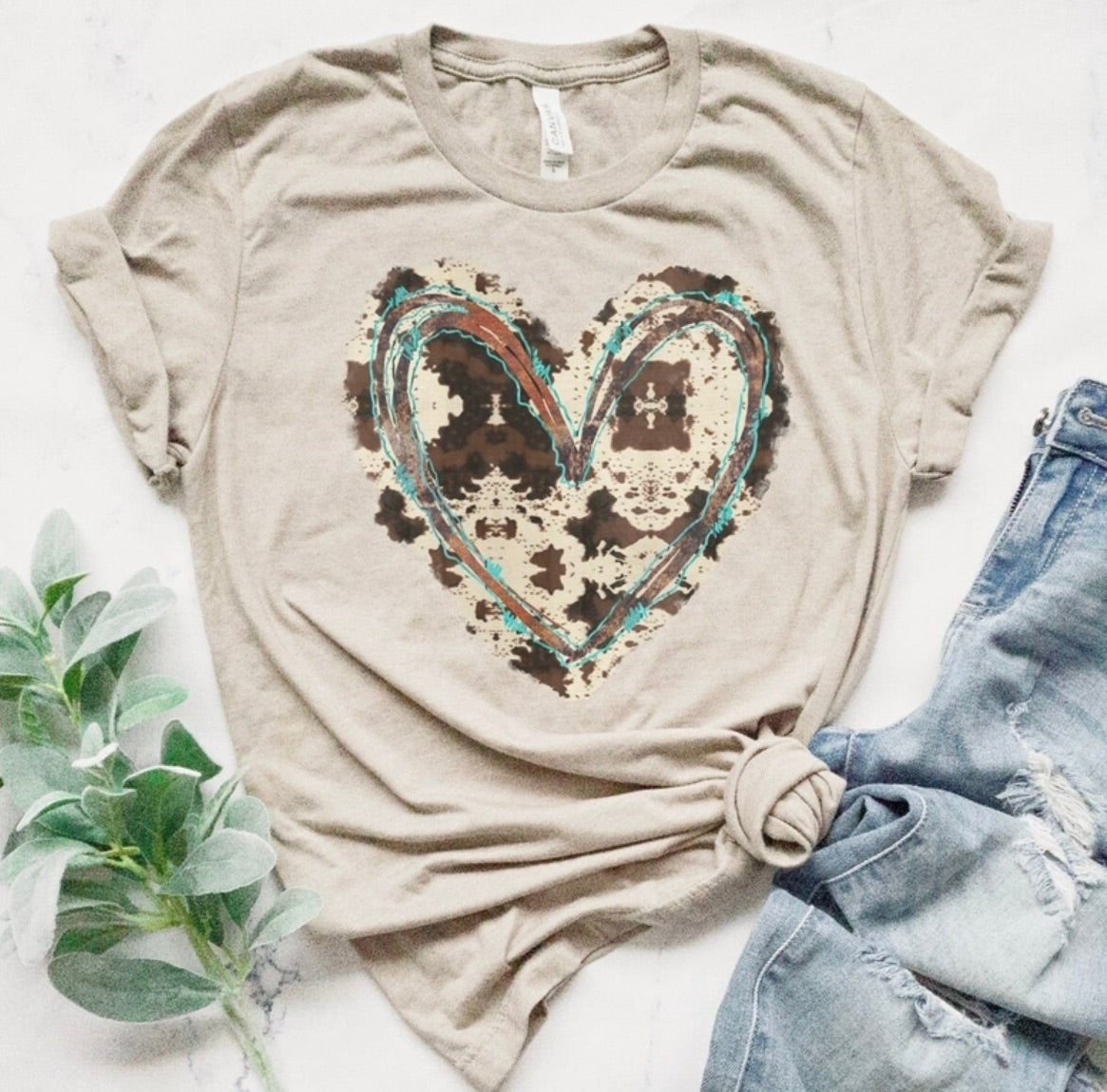 Southwestern Cow Heart Sublimation Tees